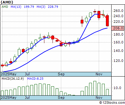 MU Score = 30 and is and last price = 201.37 MU: Overiding monthly trend good. Intermediate weekly trend down but maybe getting better. Short term daily trend down.