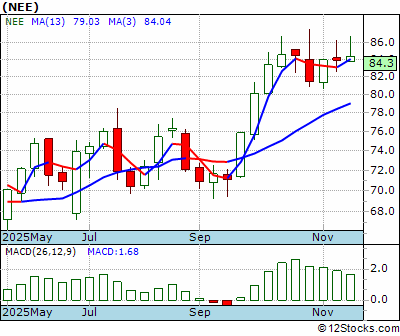 NEE Score = 50 and is and last price = 84.30 NEE: Overiding monthly trend good. Intermediate weekly trend up and very good. Short term daily trend down.