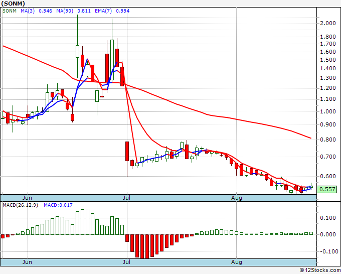 The overall 12Stocks.com Smart Investing & Trading Score is 50 (measures stock trend from 0-bearish to 100-bullish) which puts SONM in short term neutral trend.