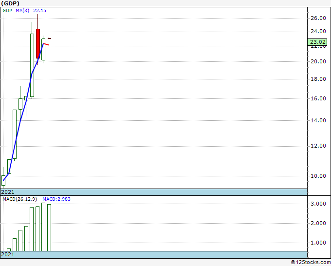 The overall 12Stocks.com Smart Investing & Trading Score is 20 (measures stock trend from 0-bearish to 100-bullish) which puts GDP in short term bearish trend.