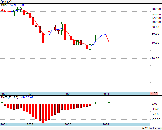 The overall 12Stocks.com Smart Investing & Trading Score is 30 (measures stock trend from 0-bearish to 100-bullish) which puts MRTX in short term bearish to neutral trend.