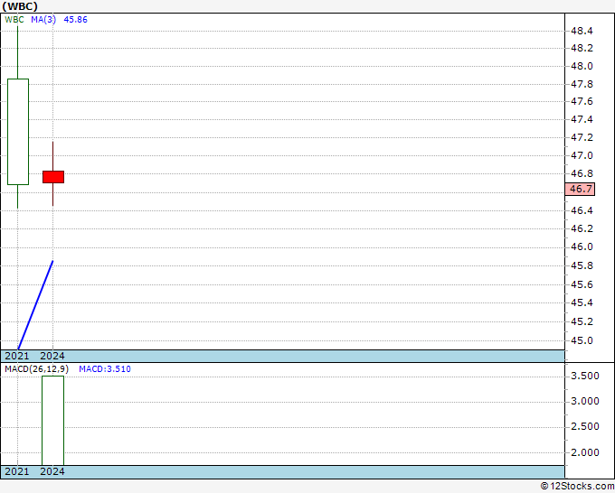 The overall 12Stocks.com Smart Investing & Trading Score is 30 (measures stock trend from 0-bearish to 100-bullish) which puts WBC in short term bearish to neutral trend.